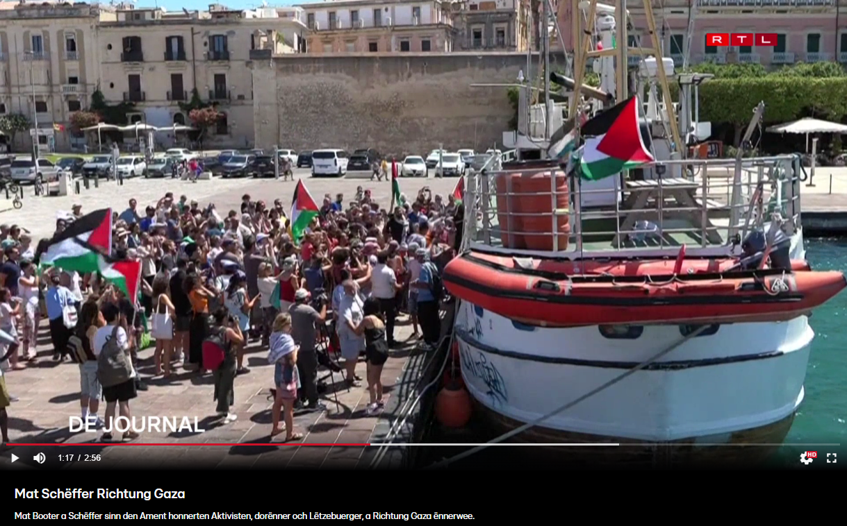 Aus 44 Länner, dorënner och Lëtzebuerg, maache sech Aktivisten vu verschiddenen Häfen aus Europa, Afrika an Asien dës Woch op de Wee a Richtung Gaza. Et wéilt ee mat der Aktioun déi maritim Blockade ënnerbriechen an de Leit sur place hëllefen, esou de Patrick Bosch vu Global Movement to Gaza Lëtzebuerg: "Les objectifs de la flotille sont strictement humanitaires, en brisant le siège illégal de la bande de Gaza, en ouvrant un couloir humanitaire, et en exigeant l'arrêt du génocide en cours à Gaza."